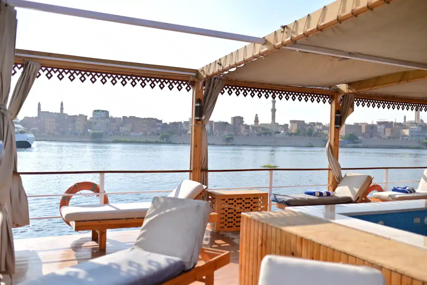 Esna: The place where get to meet our luxury cozy private boat that will be our home for the next few nights. Getting checked in and everything fitted in, to set sail on our river Nile cruise dahabiya from Esna all the way to Aswan.